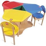 It's the perfect height for our small children to sit and use (when they sit still, of course!) and the bucket in the middle is a great place to store the Legos. It's a bit hard for children to reach into the bucket to grab the blocks (they have to stand up to reach it), not a big issue.
