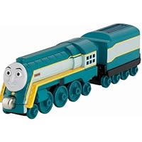 Connor is the handsome (teal with light blue and yellow lining), streamlined engine introduced in the latest Thomas DVD who along with another new character, Caitlin transports passengers from the Mainland to Ulfstead Castle on Sodor! He has his own coaches, and is based on the Hudsons of the New York Central Railroad. Very energetic and excitable (perhaps a bit more patient than Caitlin!), he loves to race the other engines, but something tells us Thomas will STILL win when the outcomes of the races are determined by our grandson! We grabbed him on Amazon for $8.99 with free shipping (Fisher-Price's MSRP for Connor is $9), to avoid out-of-stocks at Christmas!
