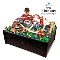 my son loves this train table but after 28 days the sticker on the table is already peeling, the wood/ paint is all chipped up too. Also there is no way to get the train tracks to stay put they slide all over the place. i contacted kid kraft and there sending me a new top so their customer service is pretty good.Find helpful customer reviews and review ratings for Metropolis Train Table & Set