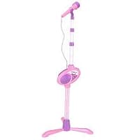I bought this microphone stand for my six-year-old, who truly does love it. I felt it deserved three stars solely because she gets so much use out of it, and doesn't seem to notice how cheaply made it is. I purchased ours for $30, but saw that it was going for over $100 at Toys 'R Us. If you have to spend more than $40 on this, just don't -it's not worth it. The speakers sound awful, if you decide to hook up an MP3 player to the unit. Not to mention, if you do use music from the outside source, the children can't really hear it so it loses it's appeal quite quickly. It does light up, which is a fun feature; and has two low-quality soundbites from the Victorious television show (one being applause, which doesn't really have much to do with the show at all). Actually, the only way your child would know that this item is the "Victorious" microphone is if they saw the box, which has Victoria Justice on the front. Otherwise, you're better off buying a better quality mic for half of the price, and sticking a Victorious sticker somewhere on it.