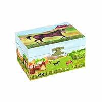 We got this little music jewelry box for our daughters 5th birthday. She absolutely loves it! The designs are adorable and just what we wanted.However, it is not well made. I make sure she is very careful with the box and she is only allowed to look at it and listen to it under supervision because I am worried about it breaking. The music box itself does not play well. After you wind it up, it plays for a little bit and then starts to "stick" and you have to constantly give the winder a nudge to keep it going. The little horse inside that spins to the music when the box is open has already fallen off and I am worried about it breaking. The horse is also not well made and looks like someone tried to cut off its head! I am going to try and tie/glue a small ribbon around its neck to hide the mark.
