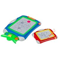 We have purchased several knock-off doodle boards at B--Lots over the last 2 years for use at home, in the car, and at both Grammy & Nana's houses. My son (now 3-1/2) loves to draw & the doodle boards really save on paper. The cheaper versions are not nearly as sturdy as these, and the cheap pens are of inferior quality, too. We finally broke down & bought this duo-pack for $20 to replace his main drawing board that had cracked through on the eraser part of the frame. We haven't had this set long enough for me to comment on its durability, but it LOOKS far sturdier than the flimsy plastic ones we've used (with much joy) until now. My son likes the smoothness of this drawing surface, compared to the other knock-off versions, too. As a pleasant bonus, having two boards lets us really practice his numbers & letters. I write an example on the little board & he practices on the larger board at his own pace without frustration since he can just erase until the shape is right. This is a toy that gets use every single day, and keeps him contented while we run errands, too. In fact, the thought when I picked up this set was that we'd keep one in the car & one at home, but no!! Our 11-month old daughter now can't get enough of the Doodle Pro!! This version has a safer pen than the cheap kinds (with a tip that retracts with pressure), so I feel she isn't in danger of gouging her eye out! As you can see if you check out the pictures I am posting, buying the "Doodle Pro Basic Blue with Bonus Travel Doodle Pro Red" lets them play side-by-side without squabbling over the board! Who knew!?!Best Deals for Doodle Pro Two-in-One (Original & Travel)