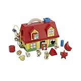 This shape sorter house has a great variety of shapes. Not only does it have standards like triangles and squares, it also has a bunch of little odd shapes that fit into the scene of the house (bird, dog, cat, kids). I like how all the pieces store inside. A panel comes off the back roof so you can easily reach in to get the pieces. The handle is on the top and not at all connected to a lid so you can pick it up without the toy coming apart. The panel is easy enough to get off for little ones to do on their own. Right now my daughter (16 mo) primarily enjoys putting the pieces in and out of the house through the access panel and doesn't use the shape spots much making it something that can easily be grown into. My 3 year old understood the 'scene' aspect of the house although the 16 mo old doesn't care about that at all.
