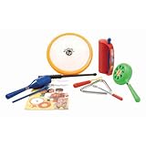 these shakers are loud, but its a 'constructive' noise rather than all of the annoying sounds that come with electronic toys. We bought this for a baby and have just taken away the sticks and triangle until he's old enough to use them, but loves the parts we've given him.I got the older version of this a few years back (made of wood, not plastic). With my second daughter, she eats things a lot more and I didn't like her chewing the paint off the wood! So I bought this newer, plastic set, which was fine because they also mixed up what instruments were included. The sound is a little different but everything is definitely more durable. The description when I purchase this stated that it came with a backpack, but it does not. I love LP Rhythmix products.
