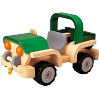 Very high quality, rugged toy. Love the details like the spring-loaded winch on the front bumper, gas can strapped to the rear bumper, rubber wheels, and roll bar that doubles as a handle. Our 2 1/2 YO is probably a little young for it but he takes it for an occasional spin -enough to scrape up the laminated wood up where it's come in contact with concrete.