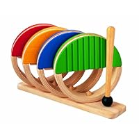 Bought this for a toddler in a very musical family. Liked the appearance as seen on the website and the natural material used. Unfortunately, the pieces are rather flimsy when you try to set them up in the holder. They kept falling out and the rack kept falling over. I just wish it had all been a little bigger and sturdier.Honest reviews on Plan Toys Percussion Set