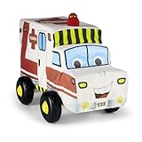 I gave this to my son for his first birthday. His brother also received the garbage truck for his birthday and the two of them love these trucks. They're nice because my boys love their truck so much they want to take them to bed and because these are soft they can. The lights are great and my sons love the sounds the wheels make when you push the car. The one problem is that the fire hose (which makes a sort of motor sound when you pull on it) wasn't able to with stand my boys rough play. So it now just dangles out the back and doesn't make a sound.Honest reviews on Manhattan Toy Rumblie