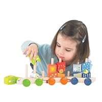 This toy has provided constant entertainment for my son. He is 1 1/2 and loves the 3 train cars especially. He loves to drive them around, being that he is really into scooting stuff around at this time. It is very simple, durable and leaves room for imagination. I do however not like that the production of Educo toys are outsourced to Asian countries so far from our own economy.Great craftsmanship and beautiful toy. My 1yr old son is still a little young to learn to stack, but likes to take it apart and push it around.