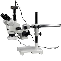 The stand is very sturdy and even with the boom arm at its fullest extent, there's hardly any unwanted movement or shake as I operate the focus and zoom controls. Spacing between the workpiece and the objective lens leaves room for working and allows me to look at components close to the board that are surrounded by tall components (That's not possible with a loupe eyepiece). Operation of the zoom and focus controls is smooth with plenty of range on both. Brightness of image, clarity of image, depth of field and field of view are all comparable with other binocular microscopes I've used. The LED lighting ring works quite well, but its light is not completely diffused and as a result the shiny surface of solder joints give lots of bright points. I have not experimented with adding a diffuser to trade brightness for uniformity of lighting. The lighting ring came with a 12V adaptor for US 2 pin sockets, I've replaced that with one for the UK. The lighting ring has a dimmer control, very useful. To use the camera, the image for the left eye is changed over to the camera by a pull-rod. It took a few minutes to get used to the camera view being different to the stereo view. The camera itself works reasonably well, but automatic exposure takes a couple of seconds to adjust and that can be a disadvantage when panning across a workpiece with varying brightness levels. The camera can give a shimmering effect at times if the workpiece moves slightly. The software supplied with the camera works quite well and the ability to define the area used for exposure control is useful. Captured camera images are not as good as looking through the eyepieces, but perfectly adequate for illustrating PCB faults. I get the impression the depth of field is smaller through the camera, but that may just be an effect of monocular camera v binocular eyepieces. Overall I'm pleased with the item, very good value for money, solidly built and good quality images. I dropped one star because the camera isn't quite as good as I'd hoped. That might be unkind given the price.