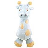 I got this for my 4-month-old and she loves it still (she's now 7 months). She hasn't been enthusiastic about other soft toys, whether they make noise or not, but there's something about the texture and shape and sound of this one that she loves. The body is just about the right size for her to grab comfortably (it was a little big when we first got it), it's easy for her to make the sound and she enjoys that a lot, and the plush is made from bamboo viscose that has a really smooth texture that's a little velvety but not too plushy. She also likes to mouth the little nubs and ears. :)