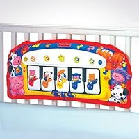 I first had experience with this toy in the daycare center where I worked. All the children in my care (6-12 months) really enjoyed it-we attached the pianos to the outsides of the cribs so they could reach them while crawling and cruising. The pianos were a little loud, especially when some infants were napping while others were up and playing, but we would just divert their attention away from the pianos during "nap time". Now I have a 10 month old son and we have a good fried who has a baby 5 months younger. When we were visiting a few weeks ago, my friend brought out the piano for my son to play with b/c he was fussing. He went "nuts" for that piano, clapping his hands and screaming at it every time an animal sound was played. When my older daughter changed it to make musical sounds, he crawled over to it and began hitting it, then noticed the lights and got excited all over again. It brought us all a good chuckle to see him so facinated and excited over a toy. Every time we go to visit now, my friend has the piano ready and waiting for him so we can watch and laugh and play with him. This is definitely one toy Santa's going to find on my son's first Christmas wish list!!!I put the Fischer-Price Kick & Play by my baby's changing table when she was 2 months old and it was an instant hit. She was fascinated by the fun songs and awesome light show. She's now 10 months old and still cracks up each and every time it plays. I highly recommend it and also recommend that it be hung by a changing table. It's also a great tool to keep her from rolling over and crawling away at changing time... a BIG PLUS !!