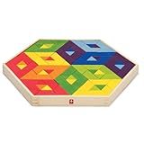 I bought this puzzle for my 5-yr-old niece, and as it turned out, it was fun for the whole family! We liked the fact that there were so many possibilities in terms of designs and that it comes with some suggested designs that are easy to create. It was too challenging for my niece to create the suggested designs on her own, but she will grow into it and she enjoyed making patterns and creating a beautiful design with every attempt. I have two minor complaints about the product one is that I wish there were more little triangles, which would add to the flexibility and possible designs, and the other is that the light and dark green pieces are so close in color that you can hardly tell the difference. Other than that, we loved it and will continue to play with it for days on end. I like the fact that it is made from bamboo and that it comes with lots of extra pieces and a nice canvas bag to hold all the pieces. I'll definitely be giving this as a gift again!