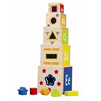 We chose these blocks over many others because they are real wood, and have a variety of educational benefits to them. We had a hard time finding a good set, because most of the other sets seem to be made of cardboard or balsa wood, but not these. After growing up with good solid toys, we've had a hard time finding similar quality now. But we are very happy with this purchase.From the minute we pulled these out, our 11 month old was thrilled, and played with them longer than any new toy we've given her so far. The blocks are made of real wood, and stack nicely within or on top of each other. The tall lip allows for them to be very stable when stacked, and the shape blocks can only go through the shape that fits them, and they fit easily.