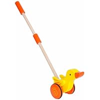 We bought this push toy along with the "Sevi Eco-Friendly Mini Pull Along Toy, Giraffe." It made a perfect combo gift for a new walker and combined it was only around $25. The child absolutely loved them and started walking and playing with them immediately. It was surprising to see that older kids (around 2 years old) also wanted to play with them.I bought this for my son a couple of months ago here on Amazon. I believe it was a different vendor as I only paid around $13.00 for it with Prime Shipping. At that price I felt I got a pretty good deal. The handle is a little shorter than I expected, but my son doesn't seem to have any problem pushing it around. He likes to pretend along with me when I get out the vacuum that he's cleaning the floors too while pushing his duck back and forth. It's a sturdy, solid little toy that my duck-loving son enjoys. :-)