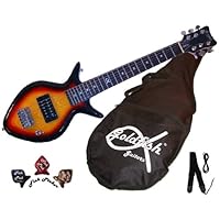 Outstanding! Great tone, nice sustain, Smooth neck, great action, nice minimalistic, single pickup & volume control that's just as loud as any guitar out there. Awesome, black sunburst look. Machine heads move with ease when tuning. My only three caveats would be the cheaply constructed cord (even though it hasn't failed me yet) to watch for it going out of tune often, but even that is only going to happen if you have big hands, a heavy, sweep picking playing style & play metal with a heavy pick (yours truly). The final warning is the design's lack of access to the very bottom frets (which again matters very little considering that the default strings are so pliable that they bend into some wickedly high screams anyway.) I can see why it was placed in the toy section as it would be a great starter guitar for kids, but it's just as practical as a travel/jam guitar for adults & maybe even more (I wouldn't be ashamed to play out with it or scared to record with it either!) The bottom line is that this axe is just fun as hell to play anywhere, for any reason, by anybody of any age. Don't be mislead by the section it's been placed in. You will also find it in the instruments section & it's worth the price & then some!